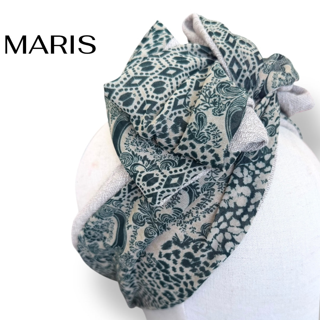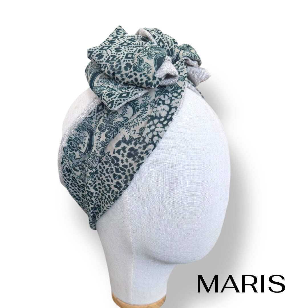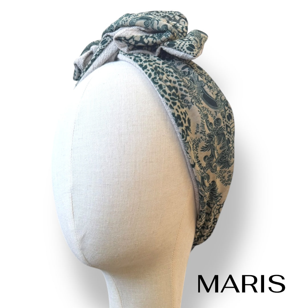 落ち着いたグリーンのオリエンタル柄が印象的なワイヤーターバン。